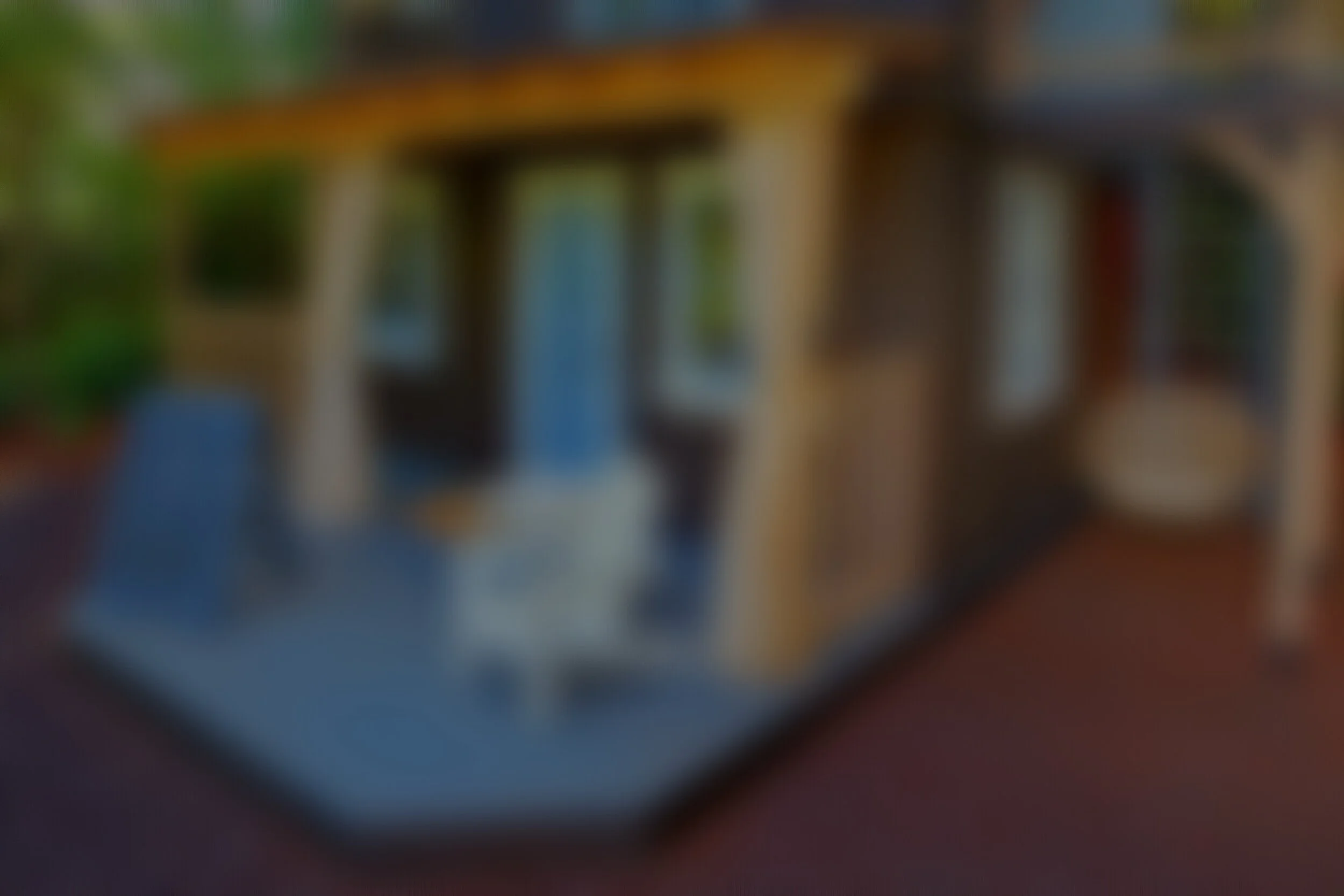 The view from the upper back door is enticing… Who wouldn’t want to run across the straight bridge and hug this gorgeous redwood tree?