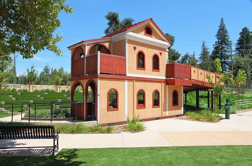 The ‘Hero’ shot of the two-story playhouse and theater, looking down from the amphitheater seating. Let’s get a good 360 degree view of this fabulous playhouse!