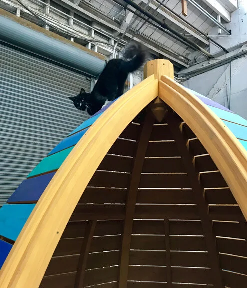 How steep is the angle of this Magical Bridge Retreat Hut? Let Sam, a certified cat inspector, take a few quick measurements and we’ll get back to you.