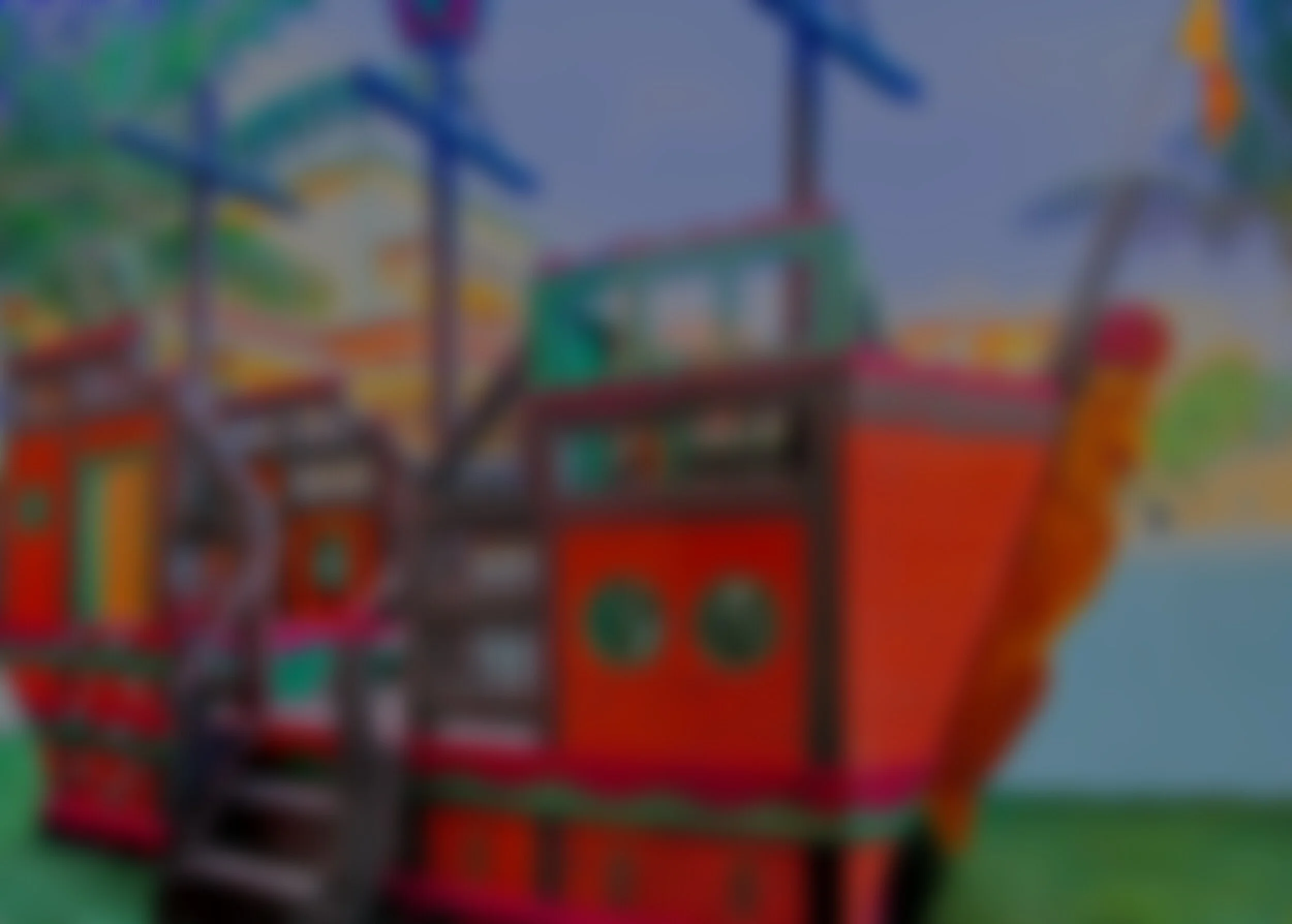 Our Pirate’s Ship structure is a colorful and whimsical play space for young children. A rope net ladder on the front side offers access to the main deck where kids can step up to the captain's quarters (bow) or the rear deck.